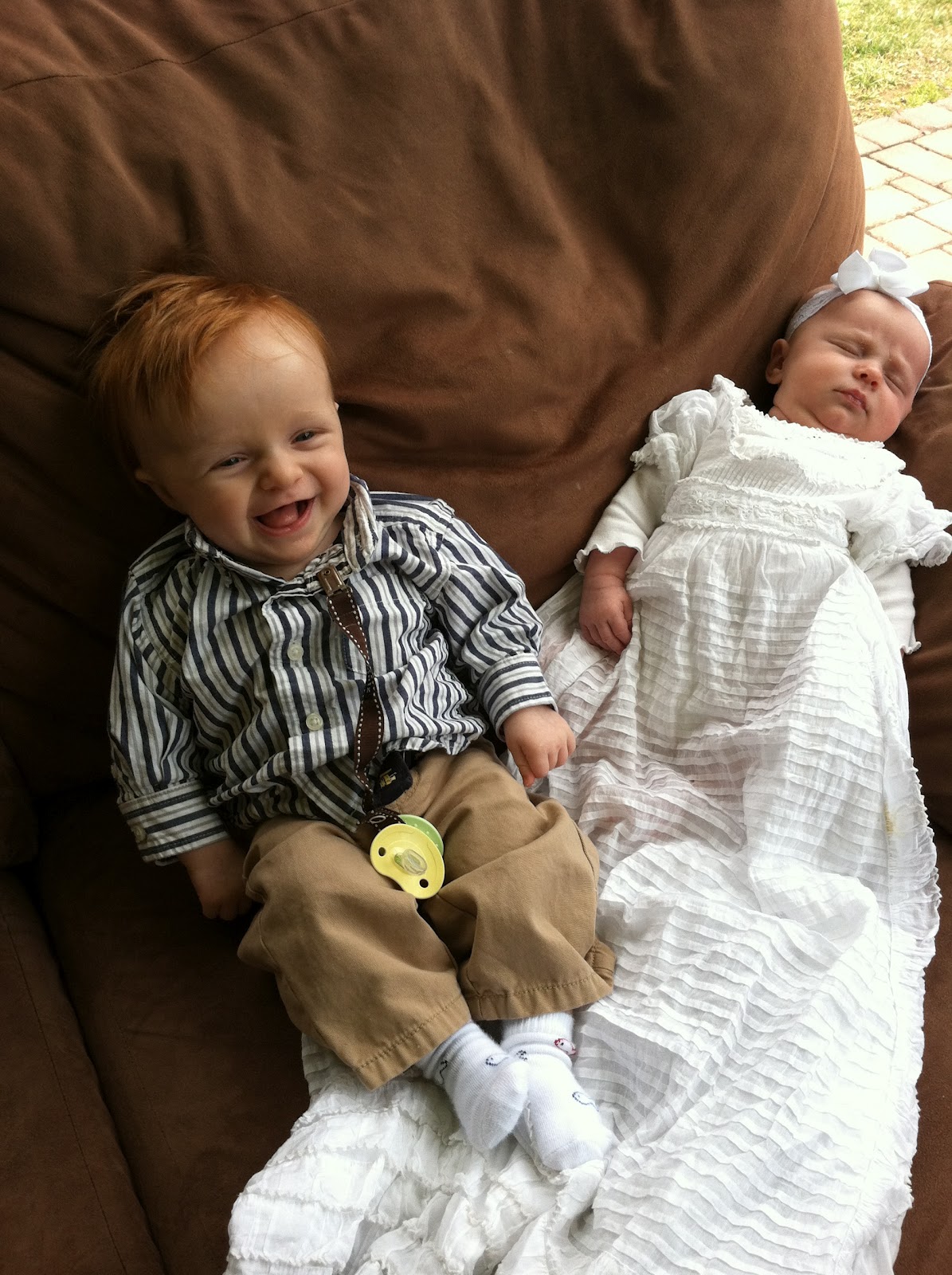 I just wanted to add this last picture of Thomas as it is so adorable. Brad put this outfit on him because he thought it was so cute, as did I. It is just a little too big still, but it will fit him soon enough.